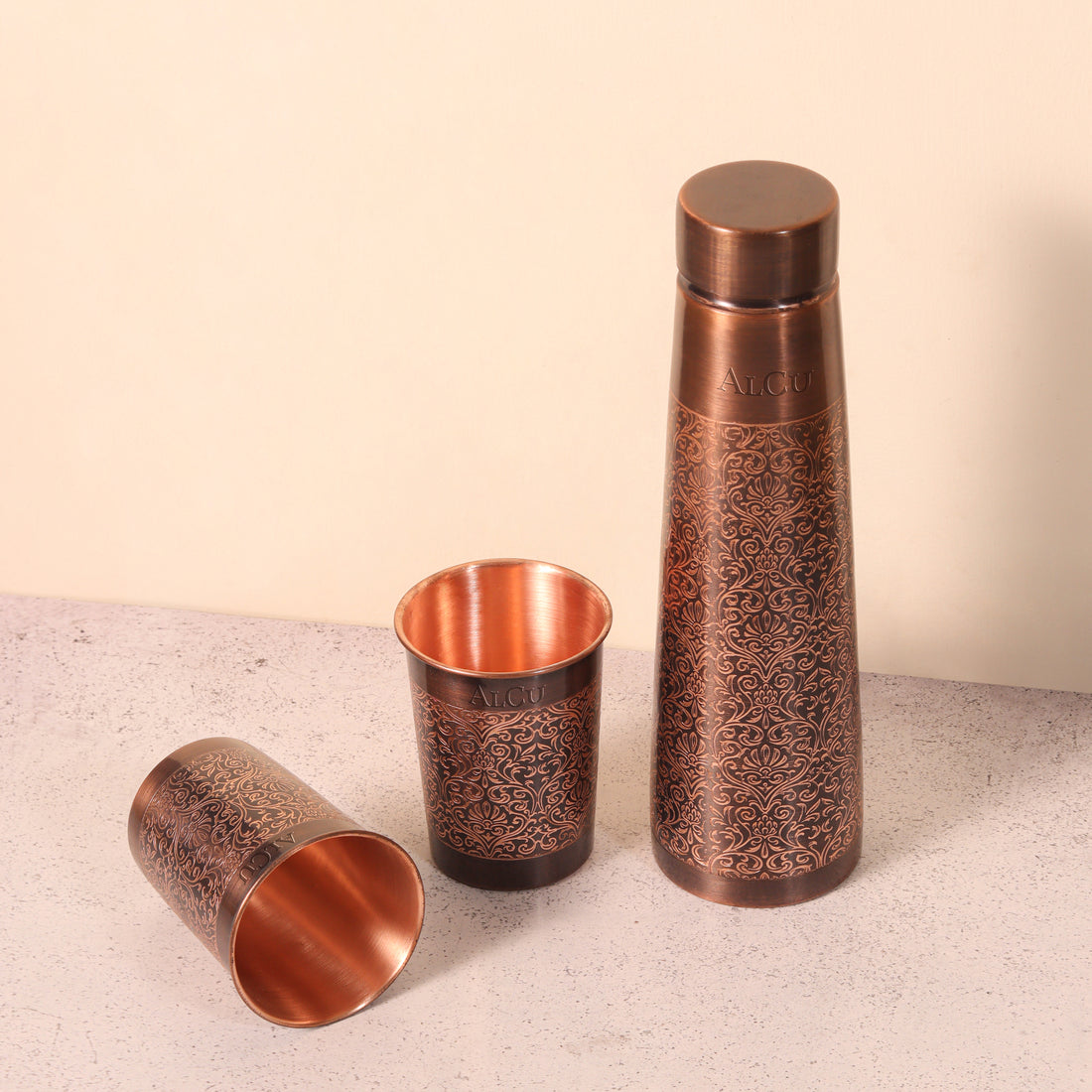 Copper Water Bottle With set of 2 Glass Antique Copper