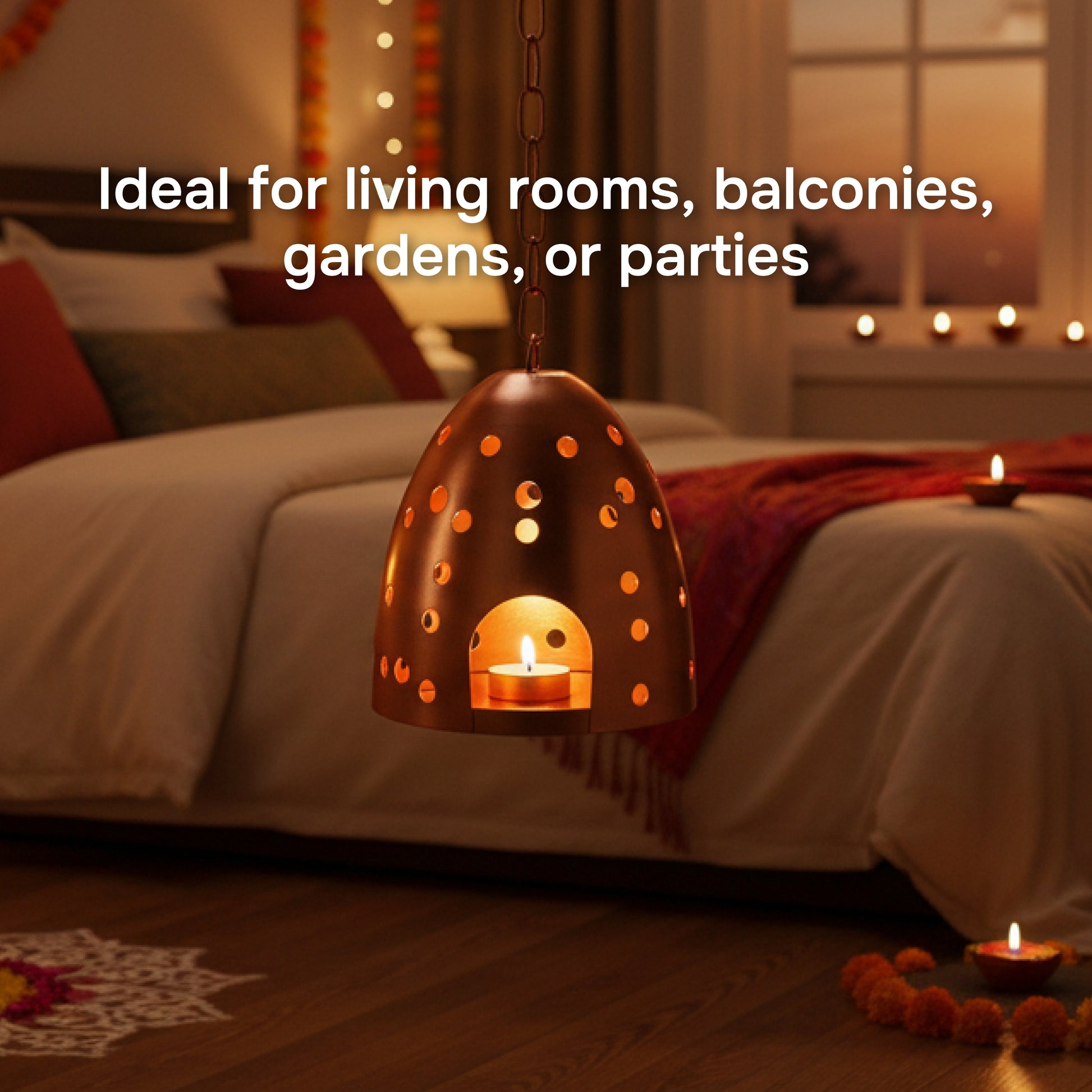 - Iron Hanging Enclossed Cave Votive with Brass Finishing.