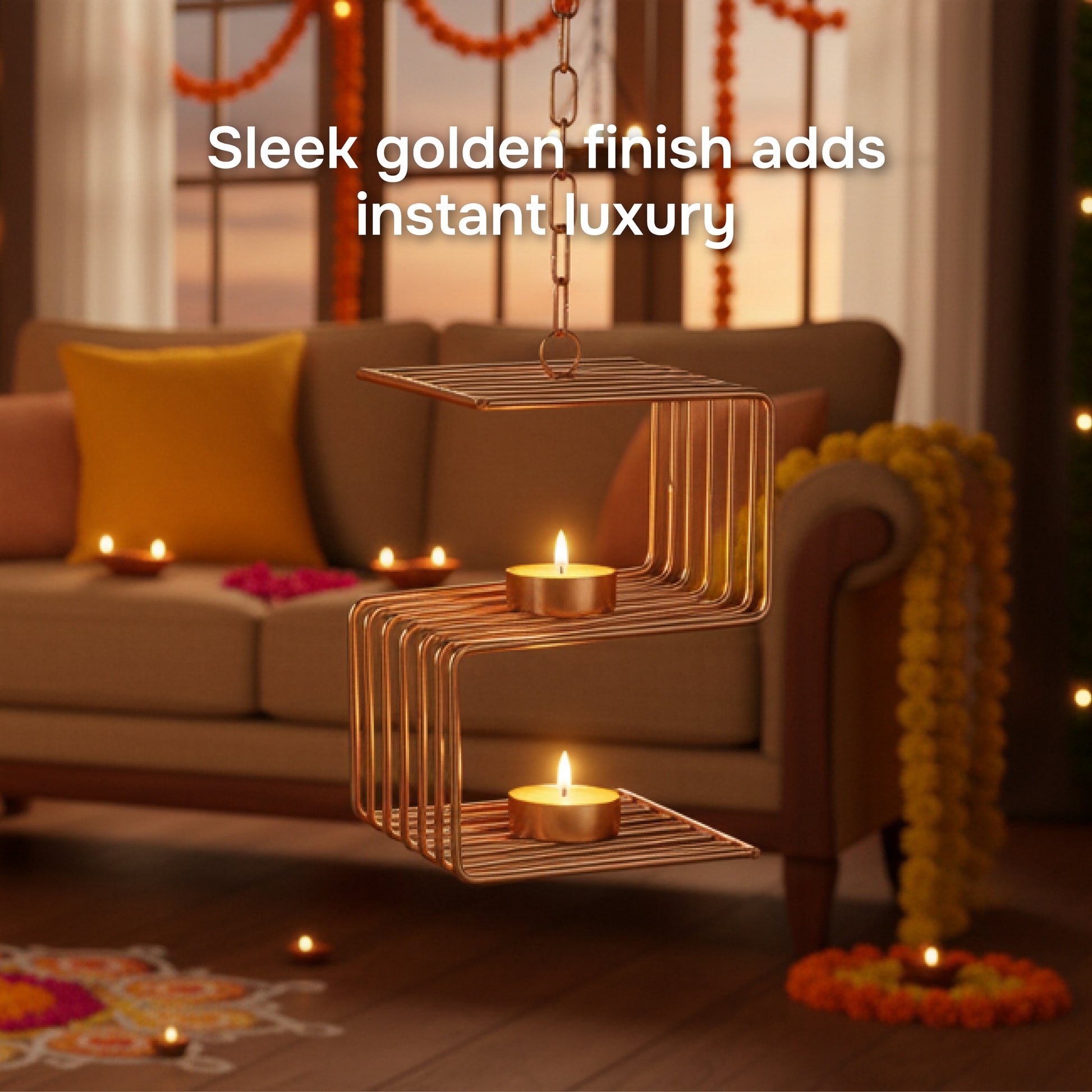 - Iron Hanging Swastik Votive With Brass Finishing.