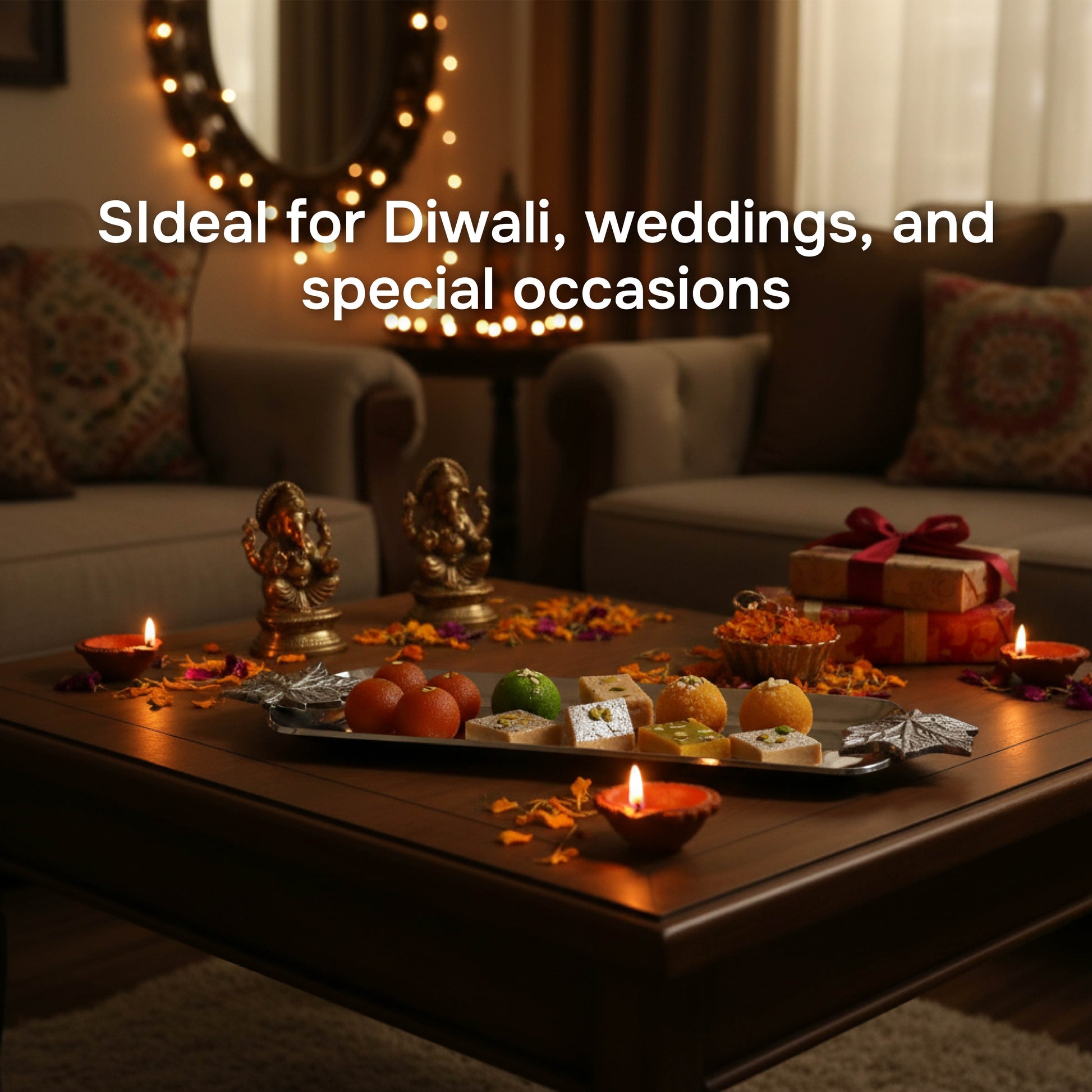 - IDEAL GIFTING OPTION: Makes a thoughtful return gift for Diwali, Karwa Chauth, weddings, or housewarming parties. A functional and decorative tray that combines elegance with utility.