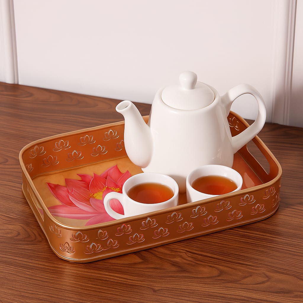 - UNIQUE DESIGNS & HANDLES: Available in round and rectangular shapes with elegant lotus, leaf, or butterfly handle designs. Each tray brings charm and traditional Indian aesthetics to your living space.